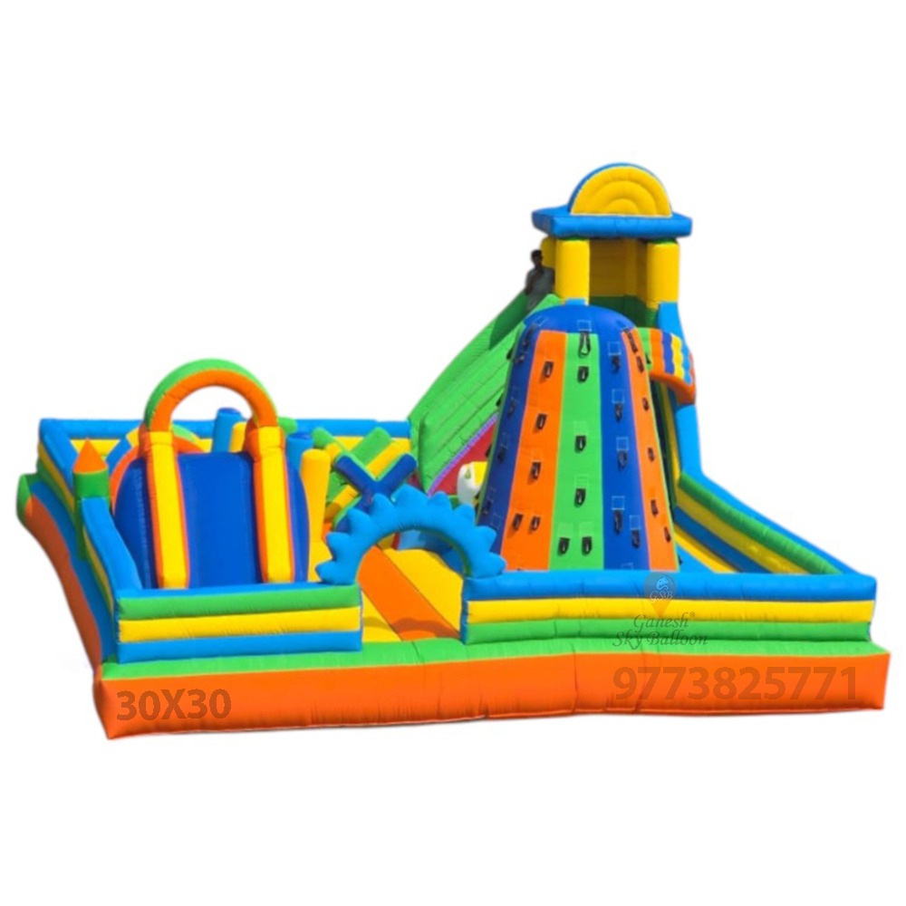 30 × 30 feet inflatable slide bouncy typically is (or could be) — plus design considerations, safety, and use‑cases. Since exact specs vary a lot (especially for large inflatables), think of this as a reference / typical spec sheet + features. (If you want, I can check specific 30×30 models available for sale in India.)